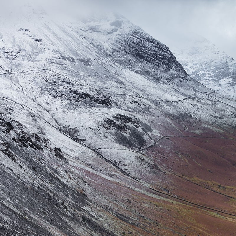 This image was captured on a cold and frosty winters day in the Lake District. Initially the weather was very poor when I arrived on location at the car park. I sat there and watched cars arrive and depart as the weather was just atrocious. I finally plucked up the courage and set off up the track towards Warnscale Bothy. The walk took around 2 hours as I was stopping for photo opportunities. As I arrived at this location the weather looked really dramatic and the atmosphere was just great. I wanted to capture the feelings and emotions I had at that time and hope that comes across in the image here. This Lake District image is also available to purchase in Black and White.