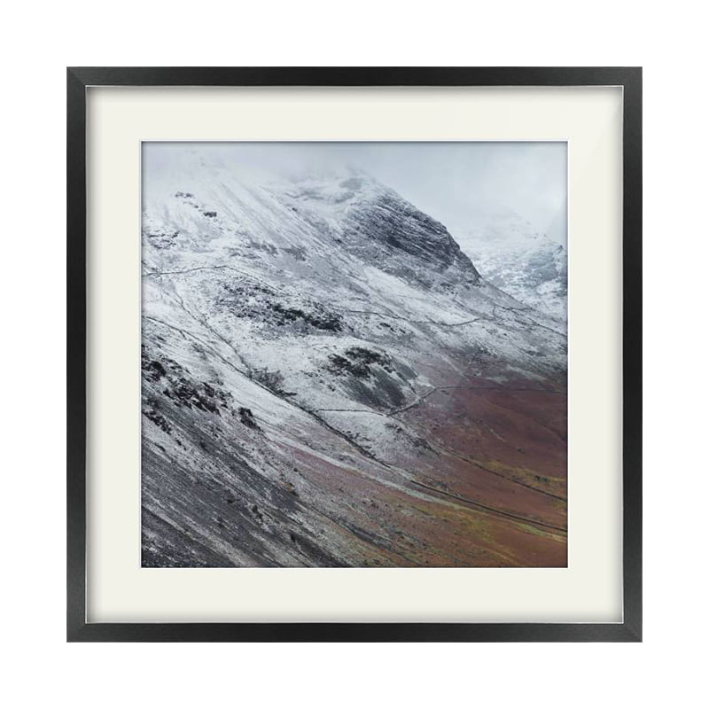 Atmospheric wintery Lake District scene at Buttermere available to purchase as Framed Artwork or as a Canvas Print. This image is of the view looking down the valley from Haystacks towards the lake at Buttermere on a cold and frosty winters morning. I have included a tightly zoomed in image to highlight the clarity of this high resolution image.
