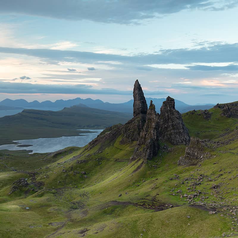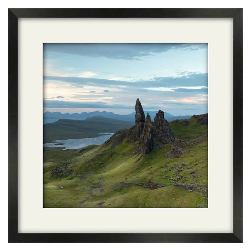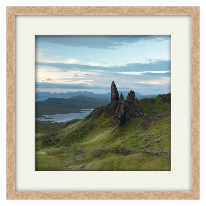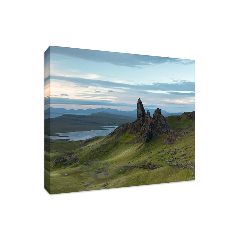 This sunrise print of the Old man of Stor was captured on a very early morning summer shoot on the Isle of Skye. I feel the final image was well worth the 2am alarm call to get up and drive to the Old man of Stor. For thse who haven’t managed the hike up to this viewpoint it took myself around 1hour. Some were passing me on the way, some I overtook on the way. Yes, still busy even when I set off up the hill at 3am. This 50 megapixel image was captured using my Canon 5dsr camera as low as possible on my Manfrotto tri-pod. It did seem relatively calm until I made the final push to the top of the ridge where it was far more exposed. This image is part of my Scottish Islands Portfolio, which contains many other Isle of Skye prints.